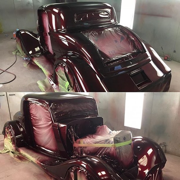 After the vehicle is sprayed with the base coat paint, it will be sprayed with several coats of clear coat paint. Most of the vehicle will be sanded 3 to 4 times, each time with a higher grit sandpaper to remove all grain from the clearcoat surface.Half of this process is hand sanding and half is using an orbital air sander. Then the vehicle will be buffed which is an art within itself. It takes this process by trained and dedicated technicians to guarantee a show car finish.